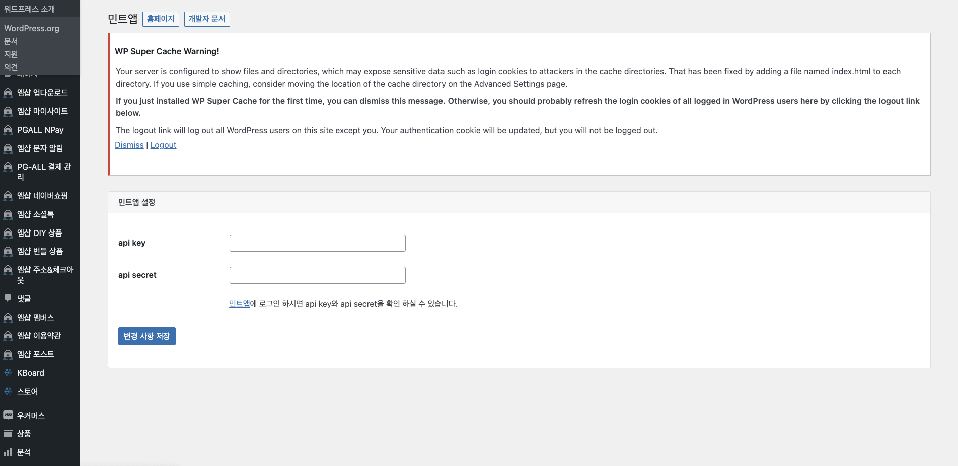 민트앱을 워드프레스 & 우커머스 사용하기 위해서 플러그인을 제공합니다.