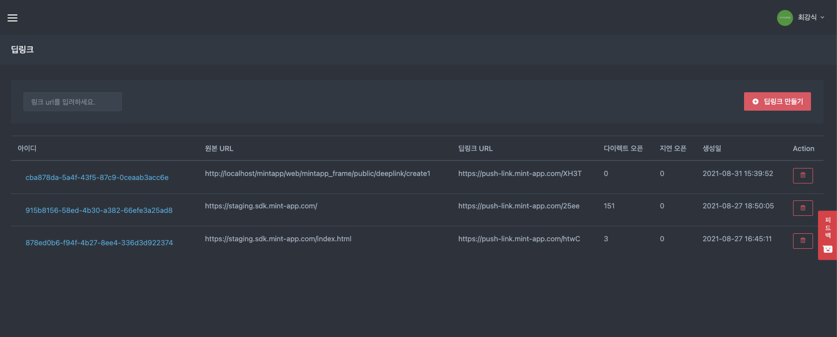 저희 민트앱에서는 고객의 앱을 위해서 딥링크 기능과 통계 기능을 추가해두었습니다.