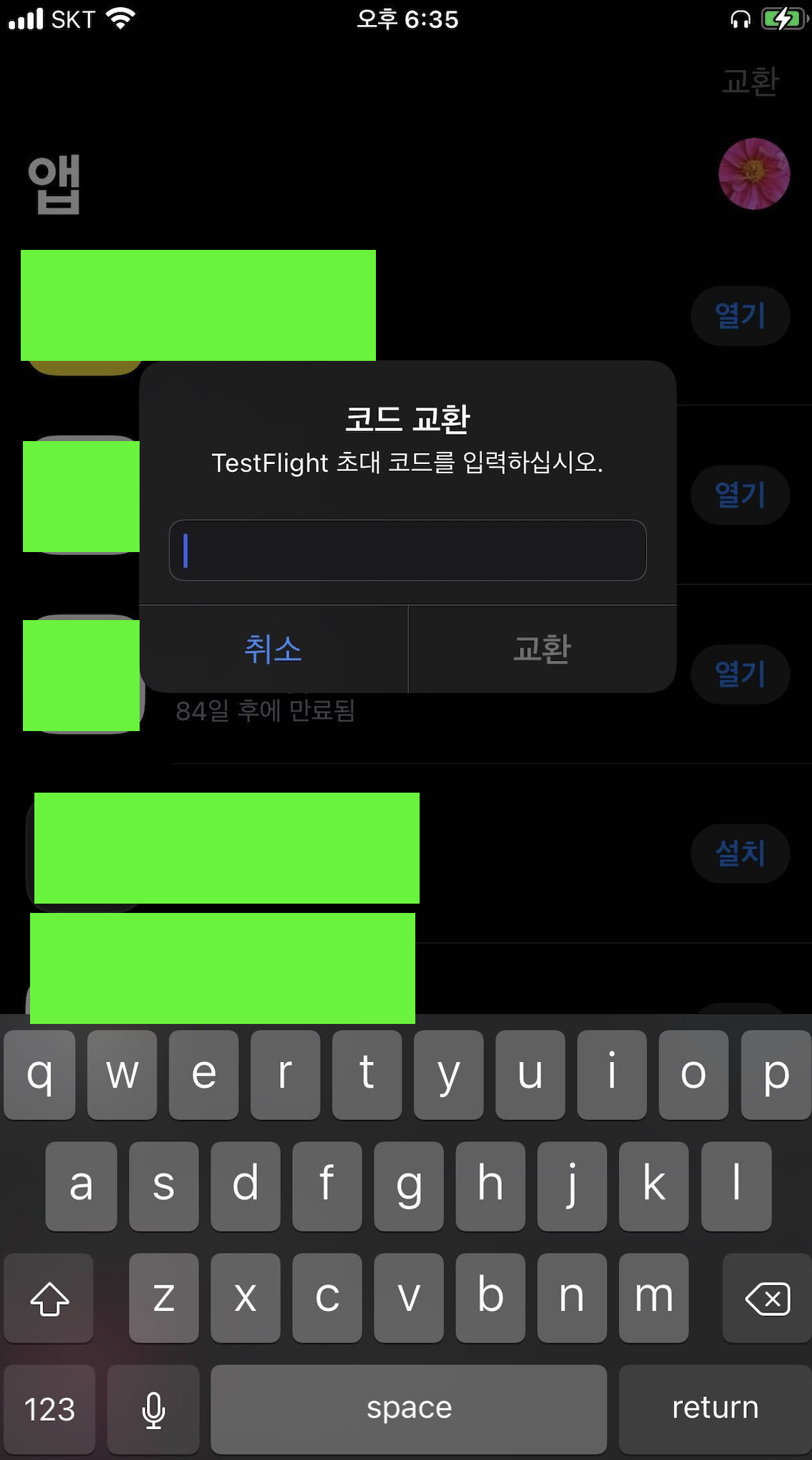 view in testflight를 눌러서 앱을 교환한다.